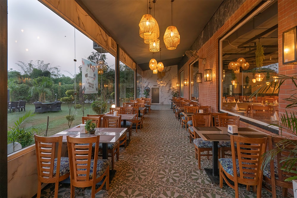 Step into Aaradhyam Restaurant, where every moment is designed to delight the senses and encourage exploration. The spacious restaurant can host over 220 guests and sits beside vibrant lawns and an inviting pool, providing a lively setting for every memorable meal. Arrive to the gentle sounds of nature and the soft clink of glassware as sunlight streams through open-air seating, creating an ideal backdrop for relaxed breakfasts or cozy winter lunches.